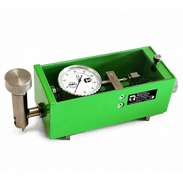 Адгезиметр ПРОМТ СМ-1М используется для контроля адгезии битумной и мастичной изоляции трубопроводов по ГОСТ Р 51164-98 (Метод Б). В основу метода положено определение усилия необходимого для сдвига подвижным штоком прибора участка изоляции размером 10х10 мм. Индикатор часового типа позволяет зафиксировать значение в мм, которое в дальнейшем переводится в усилие сдвига. Помимо этого визуально определяется характер разрушения (адгезионный, когезионный, смешанный). Адгезиметр пришел на смену устройству NOVOTEST СМ-1М.