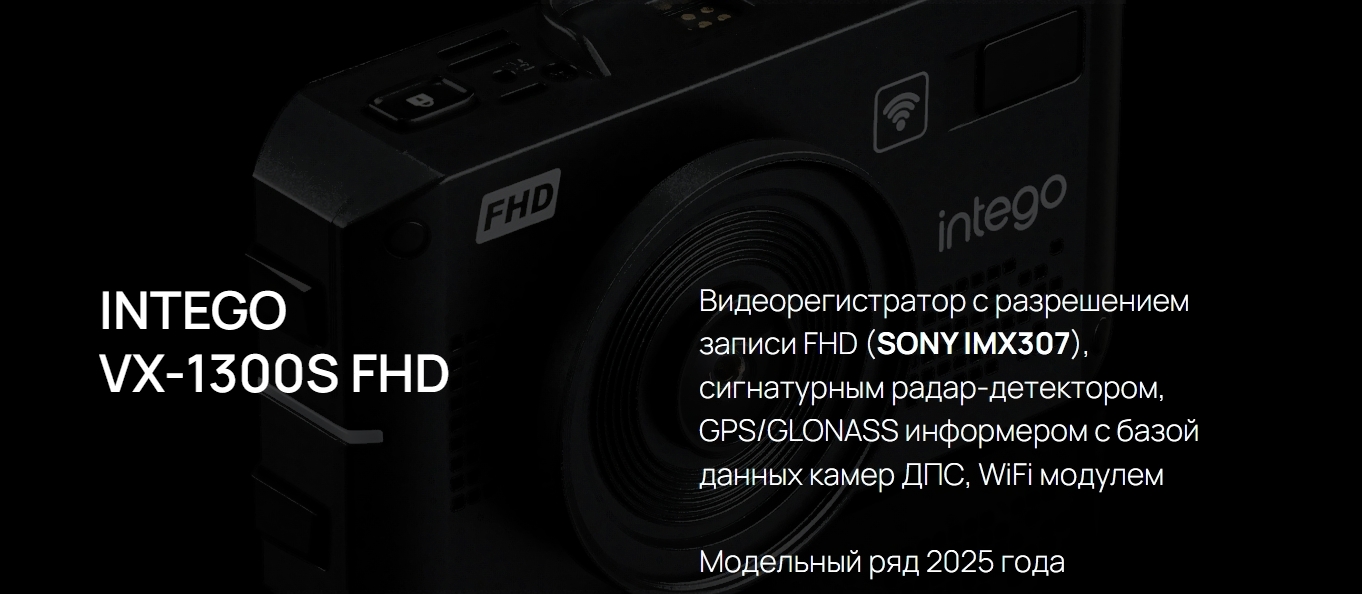 Автомобильный видеорегистратор Intego VX-1300S FHD (с радар-детектором и GPS-модулем)