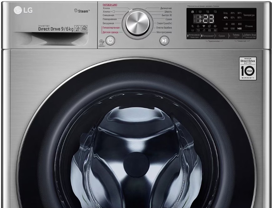 Эта модель — комбинация стирки и сушки, что полезно людям, которые не могут или не хотят приобретать отдельно сушильную машину, при этом в квартире нет балкона или лоджии, чтобы с комфортом сушить одежду на веревках. На панели управления отображаются разнообразные индикаторы, чтобы было проще следить за процессом, например: хода программы, температуры стирки, скорости отжима, времени до окончания стирки, блокировки дверцы, старт/пауза, отсрочки старта. Скорость отжима достигает 1400 оборотов в минуту. Функцию отжима можно будет отключить вручную, если она вам не нужна.