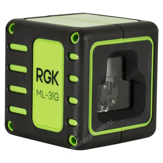 Корпус лазерного уровня RGK ML-31G выполнен из пластика с резиновыми вставками, что защищает прибор от ударов при транспортировке и во время работ. Компактные размеры прибора с гранью 6,5 см помогут использовать его в ограниченном пространстве. В корпусе находится отверстие диаметром 1/4". Это позволяет установить прибор на стандартный штатив или кронштейн.