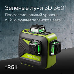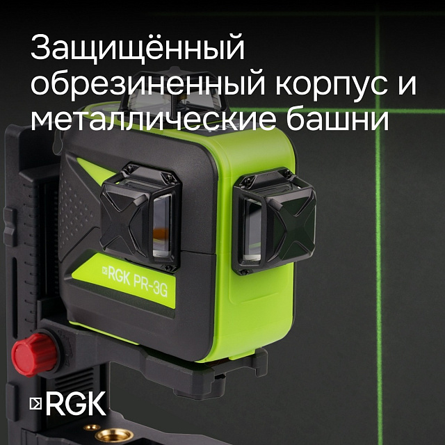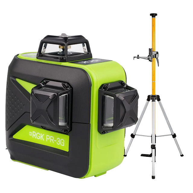 RGK PR-3G с калибровкой + штанга-упор - лазерный нивелир 3d с зеленым лучом