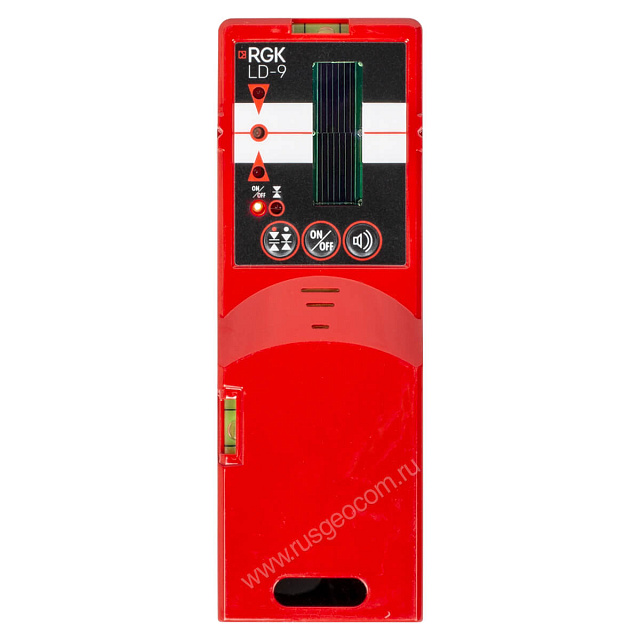 Универсальный приемник излучения RGK LD-9 с односторонним дисплеем для лазерных нивелиров (построителей плоскости) позволяет работать с приборами, когда лазерная плоскость невидима, а также служит для увеличения рабочего диапазона лазерных нивелиров до 50-70 м. Работает с красным и зеленым цветами лазеров.