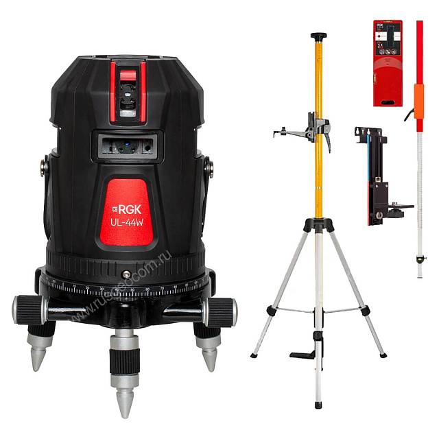 RGK UL-44W Black + штанга-упор, приемник, рейка, кронштейн - комплект лазерного нивелира