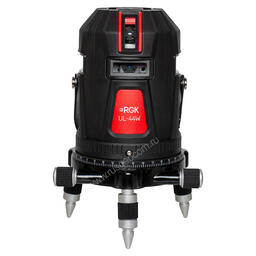 Лазерный уровень RGK UL-44W оснащается специальным лазером увеличенной мощности и проецирует четыре вертикальных и горизонтальную плоскость с разверткой 360°. Линии, которые строит этот лазерный нивелир, отлично видны при любом освещении на дистанции до 20 метров, а с использованием приемника лазерного излучения – до 50 метров. Корпус UL-44W имеет поворотную конструкцию и оснащен двумя винтами наводки и горизонтальным лимбом, что в сочетании с широкой разверткой позволяет избежать перестановок прибора, а, значит, и потери точности.