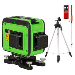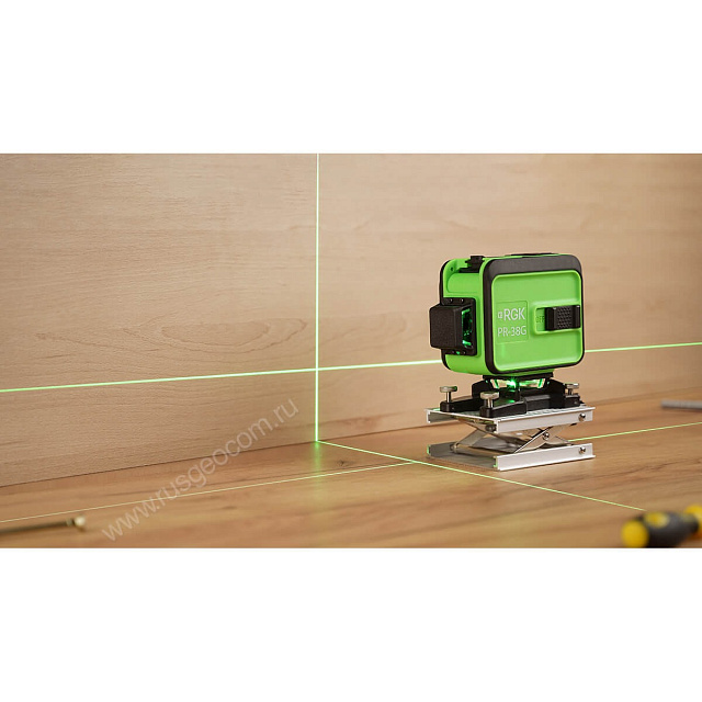 RGK PR-38G с калибровкой + штатив, приемник, рейка - лазерный нивелир 3d с зеленым лучом