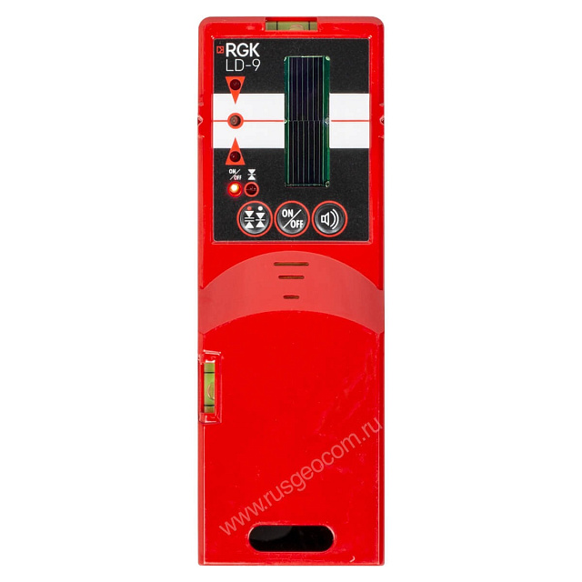 Универсальный приемник излучения RGK LD-9 с односторонним дисплеем для лазерных нивелиров (построителей плоскости) позволяет работать с приборами, когда лазерная плоскость невидима, а также служит для увеличения рабочего диапазона лазерных нивелиров до 50-70 м. Работает с красным и зеленым цветами лазеров.