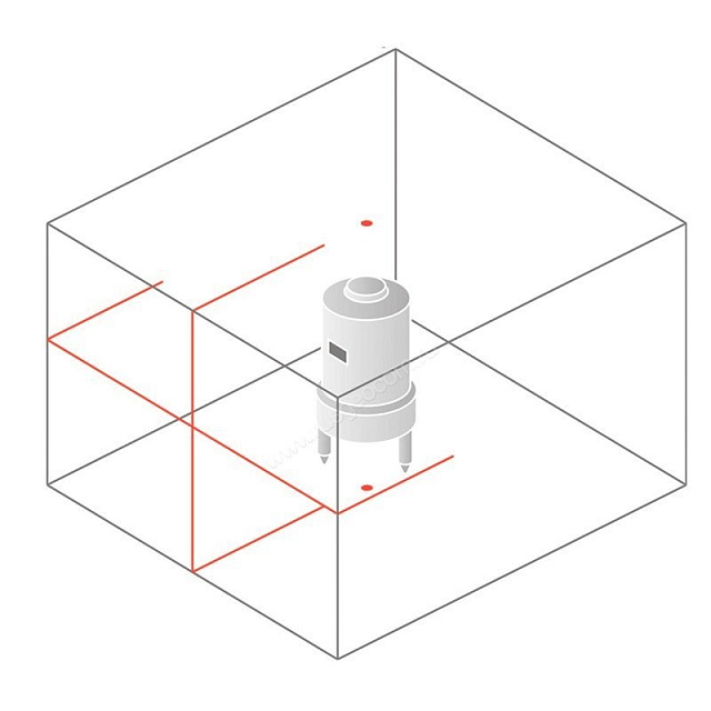 В корпусе лазерного уровня расположено отверстие с резьбой под стандартный штатив ¼ дюйма. Благодаря этому, вы можете установить прибор на штатив, отрегулировав высоту отображения линий.