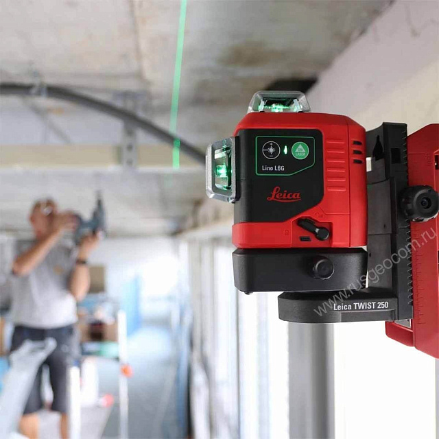 Самовыравнивающийся лазерный нивелир Leica Lino L6G-1 может работать от батареек, аккумулятора или от сети, что позволяет выполнять задачи в любых условиях и гарантирует непрерывный процесс измерений/разметки.