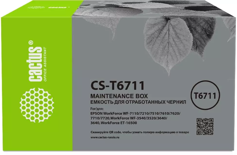 Бункер Cactus CS-T6711 для Epson WorkForce WF-3620DWF/ WF-3640DTWF/WF-7110DTW (c13t671100 емкость для отработанных чернил)