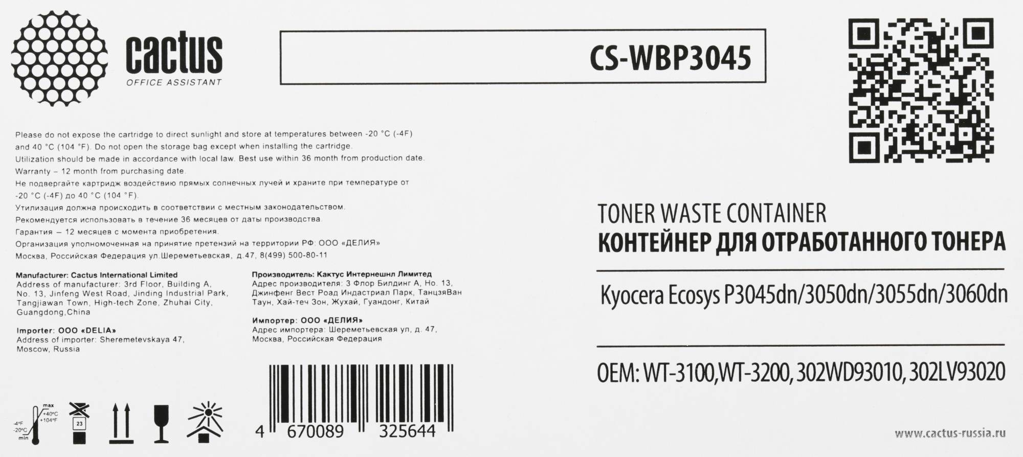 Бункер Cactus CS-WBP3045 для Kyocera Ecosys P3045dn/3050dn/3055dn/3060dn 15500стр. (wt-3100/wt-3200/302wd93010/302lv93020)