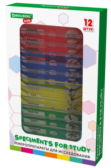 Образцы: 12 готовых микропрепаратов (чешуя рыбки, крыло бабочки и др.), зелёный лук для самостоятельных опытов