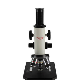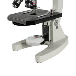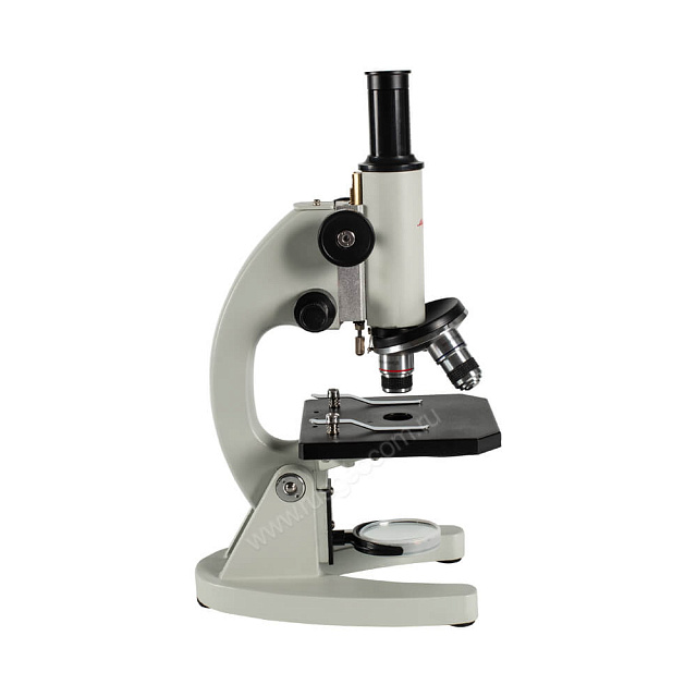 Школьный микроскоп Микромед С-12 с трехпозиционным револьверным механизмом, укомплектован 3 объективами и 2 окулярами, что позволяет исследовать различные образцы с кратностью 40x - 640x. Реализуя метод наблюдений по светлому полю, в качестве источника проходящего света прибор оснащается поворотным зеркалом, положение которого регулируется относительно двух осей.