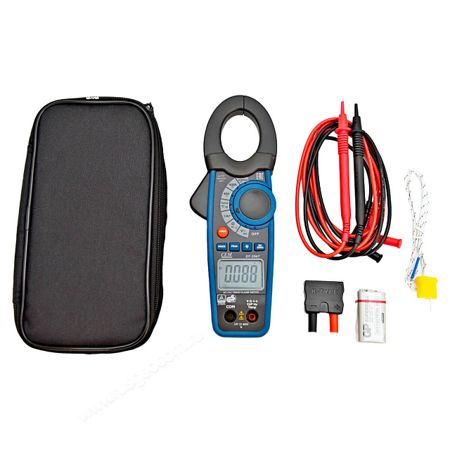 Токовые клещи DT-3347 имеют автономное питание, которое осуществляется от батареи 9В типа "Крона", поставляемой в комплекте с устройством. Батарейный отсек имеет специальную крышку, которая легко открывается, это обеспечивает легкость замены источника питания. Для экономии заряда аккумулятора аппарат имеет функцию автоматического отключения. Эта функция срабатывает через 15 минут бездействия устройства.