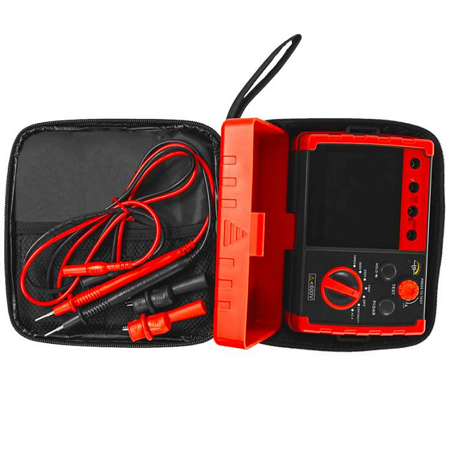 Одной из ключевых функций - определение сопротивления изоляции до 5,5 ГОм. Эта величина позволяет оценить качество изоляции и выявить участки, утратившие свои свойства. Прибор предлагает четыре испытательных режима: 100 В, 250 В, 500 В и 1000 В, что позволяет выбрать оптимальный уровень напряжения в зависимости от конкретных условий измерения.