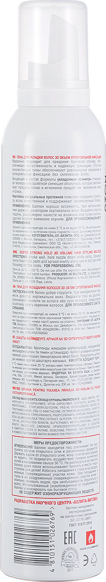 Белита Пена для укладки волос "3D Объем" суперсильной фиксации, 300 мл