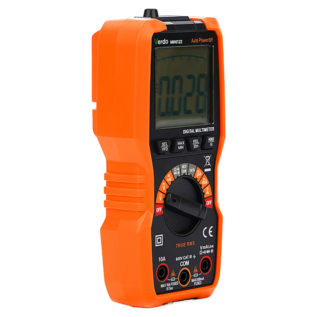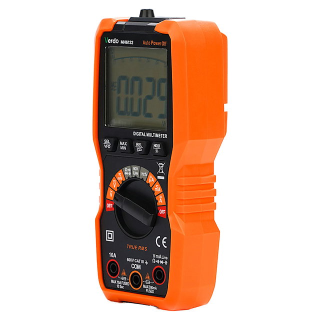 Мультиметр VERDO MH6122 – это ручной цифровой мультиметр с функцией отображения истинного среднеквадратичного значения (TrueRMS) и большим жидкокристаллическим дисплеем с подсветкой, и фонарем, что облегчает считывание показаний. Мультиметр оснащен функцией защиты от перегрузки и индикатором разряженной батареи. Этот многофункциональный измерительный прибор идеально подходит как для профессионального использования на производстве, ремонта и сервисного обслуживания, так и для обучения и бытового применения.