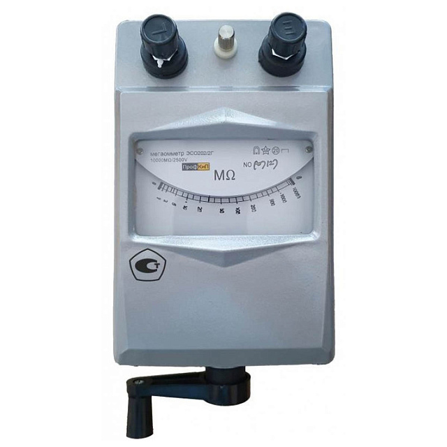 Мегаомметр ПрофКиП ЭСО202/2Г (измеритель сопротивления изоляции ПрофКиП ЭСО202/2Г) предназначен для измерения сопротивления изоляции электрических цепей, не находящихся под напряжением. Мегаомметр ПрофКиП ЭСО202/2Г применяются для измерения сопротивления изоляции электрической проводов, кабелей, разъёмов, трансформаторов, обмоток электрических машин и других устройств, а также для измерения поверхностных и объемных сопротивлений изоляционных материалов. Питание мегаомметра ПрофКиП ЭСО202/2Г осуществляется от встроенного электромеханического генератора.