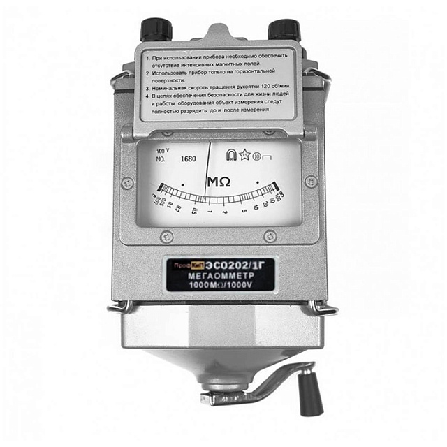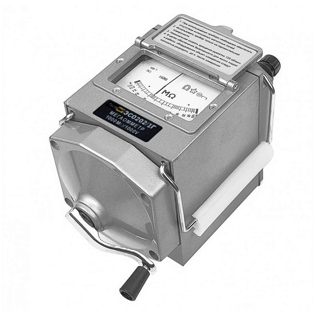 Мегаомметр ПрофКиП ЭСО202/1Г (измеритель сопротивления изоляции ПрофКиП ЭСО202/1Г) предназначен для измерения сопротивления изоляции электрических цепей, не находящихся под напряжением. Мегаомметр ПрофКиП ЭСО202/1Г применяются для измерения сопротивления изоляции электрической проводов, кабелей, разъёмов, трансформаторов, обмоток электрических машин и других устройств, а также для измерения поверхностных и объемных сопротивлений изоляционных материалов. Питание мегаомметра ПрофКиП ЭСО202/1Г осуществляется от встроенного электромеханического генератора.
