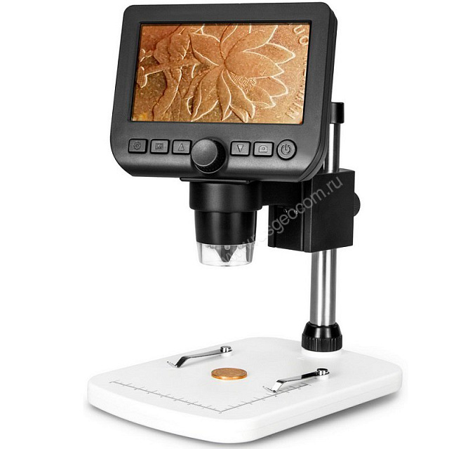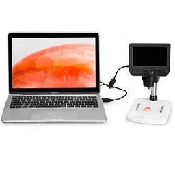 Встроенная цифровая камера с разрешением 0,3 Мпикс обеспечивает высокое качество изображения. Она передает картинку на встроенный экран с диагональю 4,3 дюйма в режиме реального времени. Это позволяет пользователям не только наблюдать за образцами, но и делать фотографии и записывать видеоролики своих исследований. Качество изображения можно настраивать программно, что дает возможность адаптировать Levenhuk DTX 350 LCD под конкретные задачи.