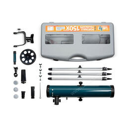 Для работы с прибором не придется ничего докупать, все необходимые аксессуары уже включены в комплект. Так, например, разные окуляры и линза Барлоу позволяют быстро менять увеличение, а искатель с пятикратным увеличением помогает выполнять предварительное наведение на небесные тела.