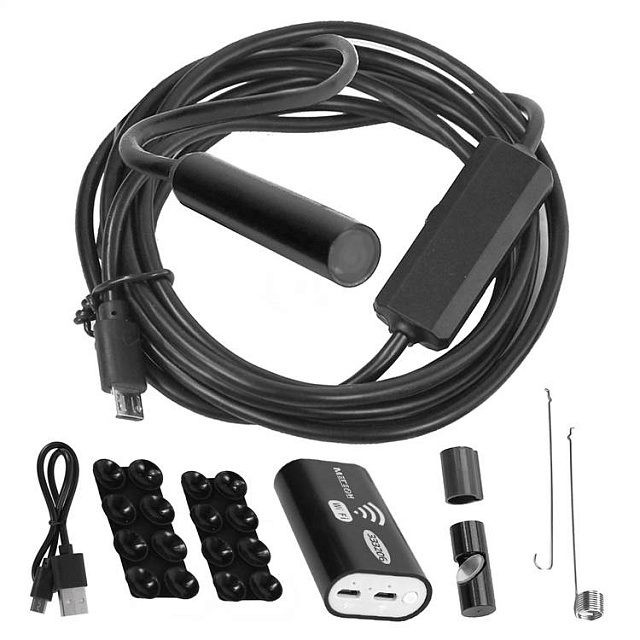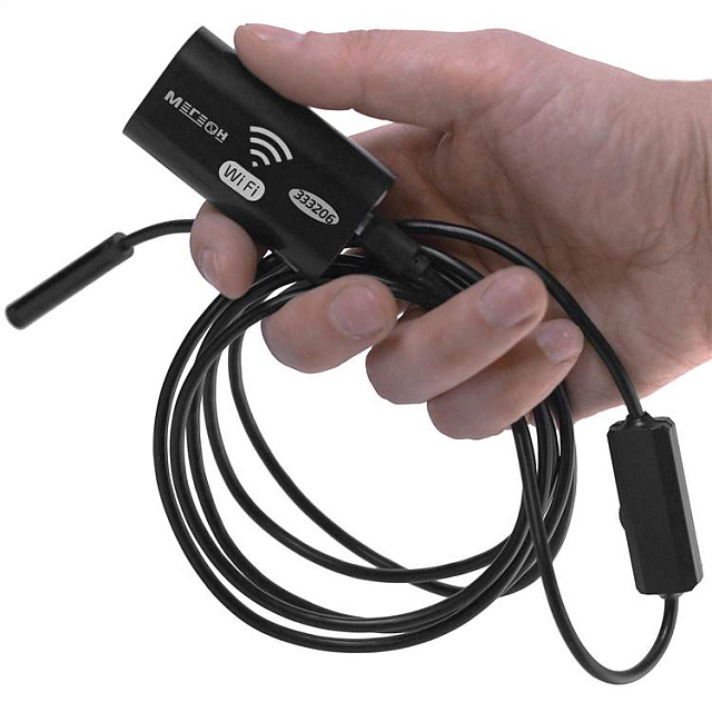 МЕГЕОН 333206 - это видеоскоп с беспроводной передачей данных при помощи Wi-Fi. Прибор удобен своей возможностью работать с большим количеством мобильных средств связи. Теперь размер изображения зависит только от диагонали экрана личного смартфона или планшета. Программное обеспечение позволяет эксплуатировать совместно с операционными системами на базе Android, IOS и Windows. Необходимое приложение доступно для скачивания без ограничения в Play Market, APP Store и на сайте компании. Для работы с персональным компьютером требуется обязательное наличие функции Wi-Fi. Передатчик эндоскопа обеспечивает связь устройств на расстоянии от 5 до 30 метров. Видеонаблюдение обеспечивается пыле- влагозащищённой камерой диаметром 8 мм. Яркая светодиодная подсветка высокой интенсивности гарантирует прекрасную видимость в полном отсутствии освещения.