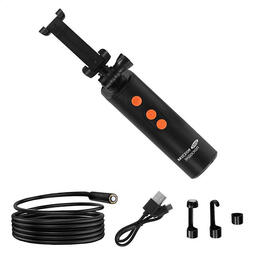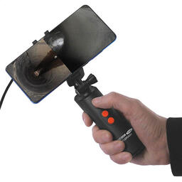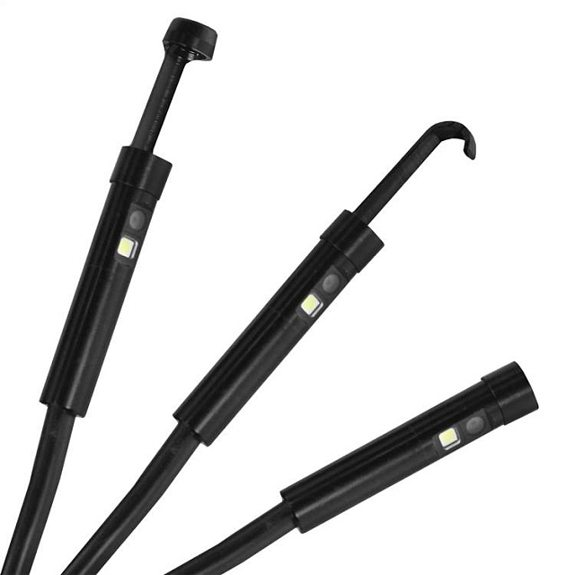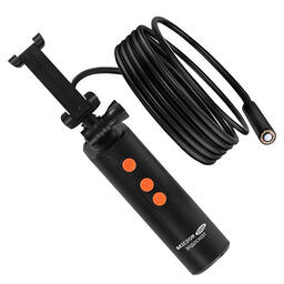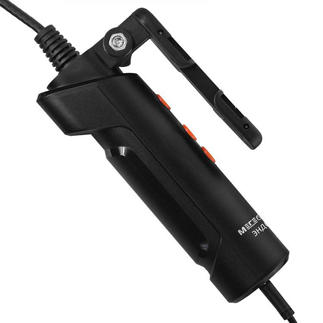 МЕГЕОН 33031 - видеоскоп- эндоскоп с подключением через Wi-Fi. Прибор удобен своей возможностью работать с большим количеством мобильных устройств. Теперь размер изображения зависит только от диагонали экрана личного смартфона или планшета. Программное обеспечение позволяет работать с операционными системами на базе Android и IOS. Необходимое приложение доступно скачивания без ограничения в Play Market и APP Store. Конструкция захвата позволяет свободно удерживать гаджет шириной до 73 мм, но это не мешает держать более габаритный аппарат в руках, так как передачу данный обеспечивает дистанционная связь. Видеонаблюдение осуществляется с двух пыле- влагозащищённых камер- фронтальной и боковой. Яркая светодиодная подсветка высокой интенсивности гарантирует прекрасную видимость в полном отсутствии освещения. Полужёсткой зонд встроен в рукоятку и не имеет разъёмного соединения.