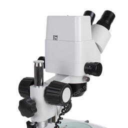 Конструкция визуальной насадки микроскопа МС-2-Z00M Digital позволяет выводить изображение в режиме реального времени на экран ПК с помощью встроенной камеры 1,3 МП. Таким образом можно одновренменно проводить исследование через окуляры и на экране. В отличии от тринокулряных моделей стереомикроскопов, у которых производится переключение светового потока с левого тубуса на вертикальный выход, МС-2-Z00M Digital в режиме включенной камеры позволяет производить наблюдение обоими глазами.