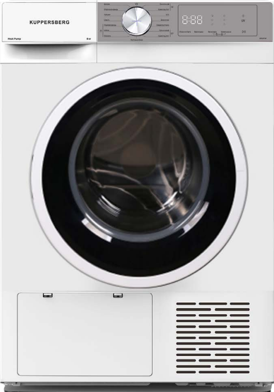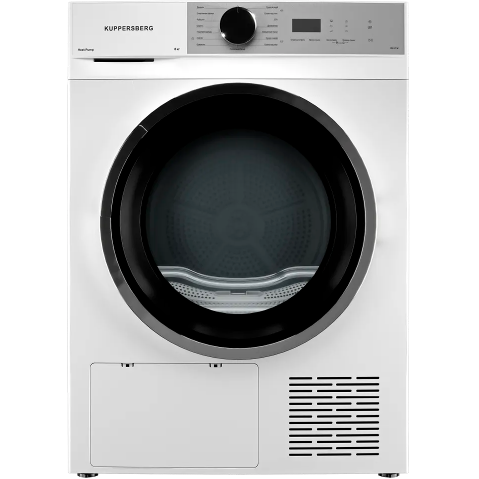 Сушильная машина Kuppersberg/ Сушильная машина Kuppersberg, отдельностоящая, тепловой насос, 8 кг, 15 программ, отсрочка старта, защита от сминания, ультрафиолет, электронное управление, цвет белый