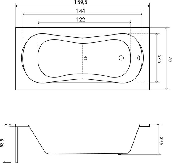 • Глубина ванны 39.5 см