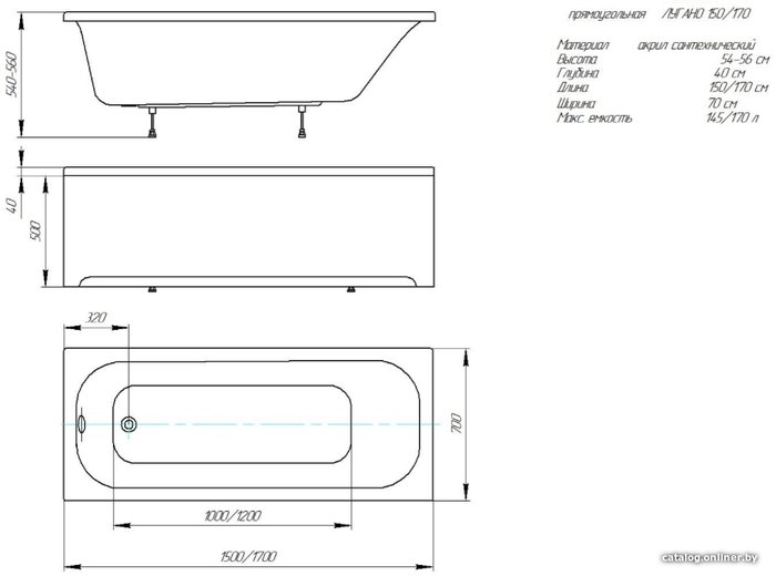 - Глубина ванны 40 см