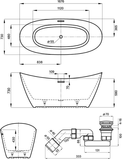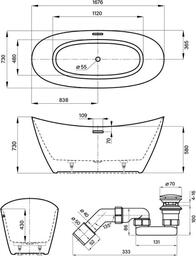 Carefree Dove 168x73 23290101R (отдельностоящая ванна белый глянец, экран, ножки, сифон-автомат хром)