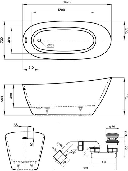 Panta Rei 168x73 23720102R (отдельностоящая ванна белый глянец, экран, ножки, сифон-автомат глянцевый белый)