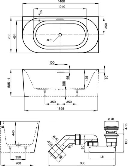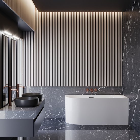 Collaro Mini 140x70 28870503R (пристенная ванна (правая) белый глянец, экран, ножки, сифон-автомат матовый черный)