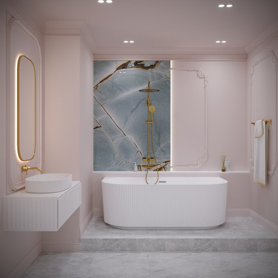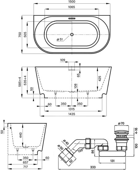 Festive Fox 150x75 28730101R (пристенная ванна белый глянец, экран, ножки, сифон-автомат хром)
