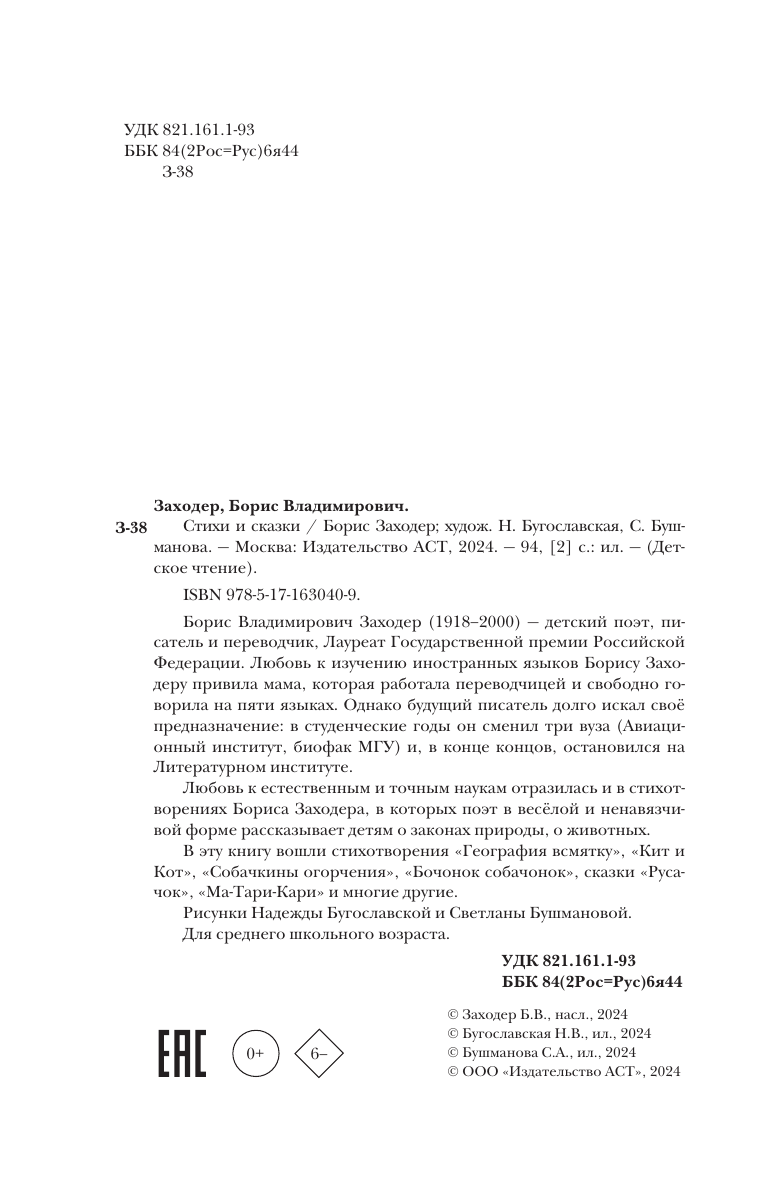 Книга АСТ Стихи и сказки, твердая обложка (Заходер Борис)