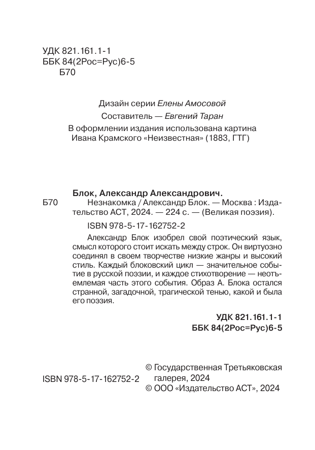 Книга АСТ Незнакомка, твердая обложка (Блок Александр)