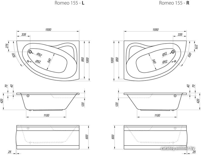 • Форма угловая асимметричная