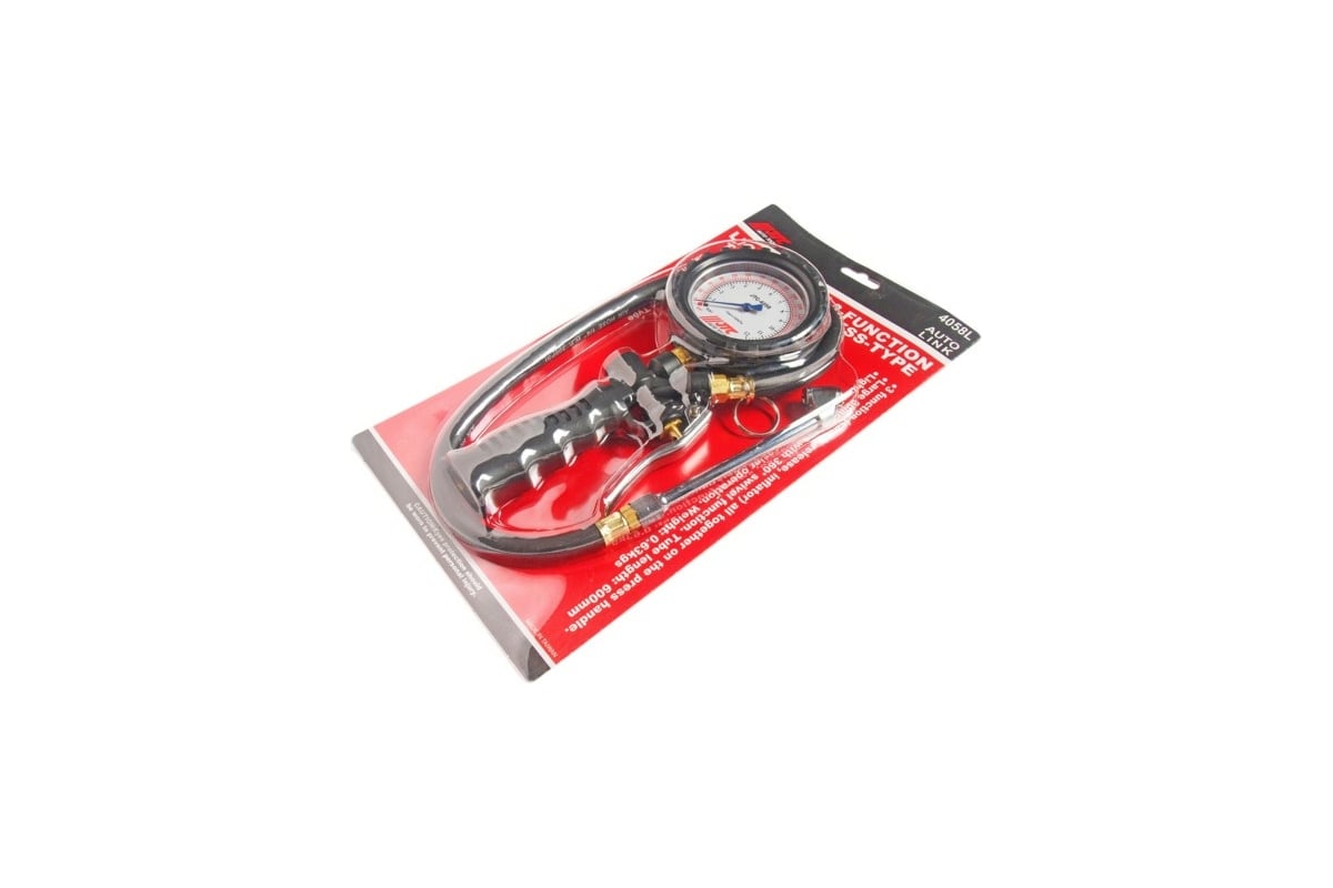 Многофункциональный шинный манометр JTC 4058L - это универсальный прибор, который помимо своей основной функции - измерения давления, способен его сбрасывать, а также нагнетать до требуемого уровня. Предназначен исключительно для профессионального использования в условиях автосервиса или шиномонтажной мастерской. Погрешность измерений при давлении до 110 psi - ± 2 psi, более 110 psi - ± 4 psi.