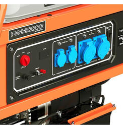 На передней панели бензогенератора Zongshen PB 22000 E расположены 2 стандартные евророзетки, 2 силовых розетки для мощного оборудования и выход постоянного тока 12 В для зарядки аккумуляторов. Разнообразие форматов подключения и большое количество розеток позволяют одновременно решать несколько задач без переходников, сетевых фильтров и т. д.