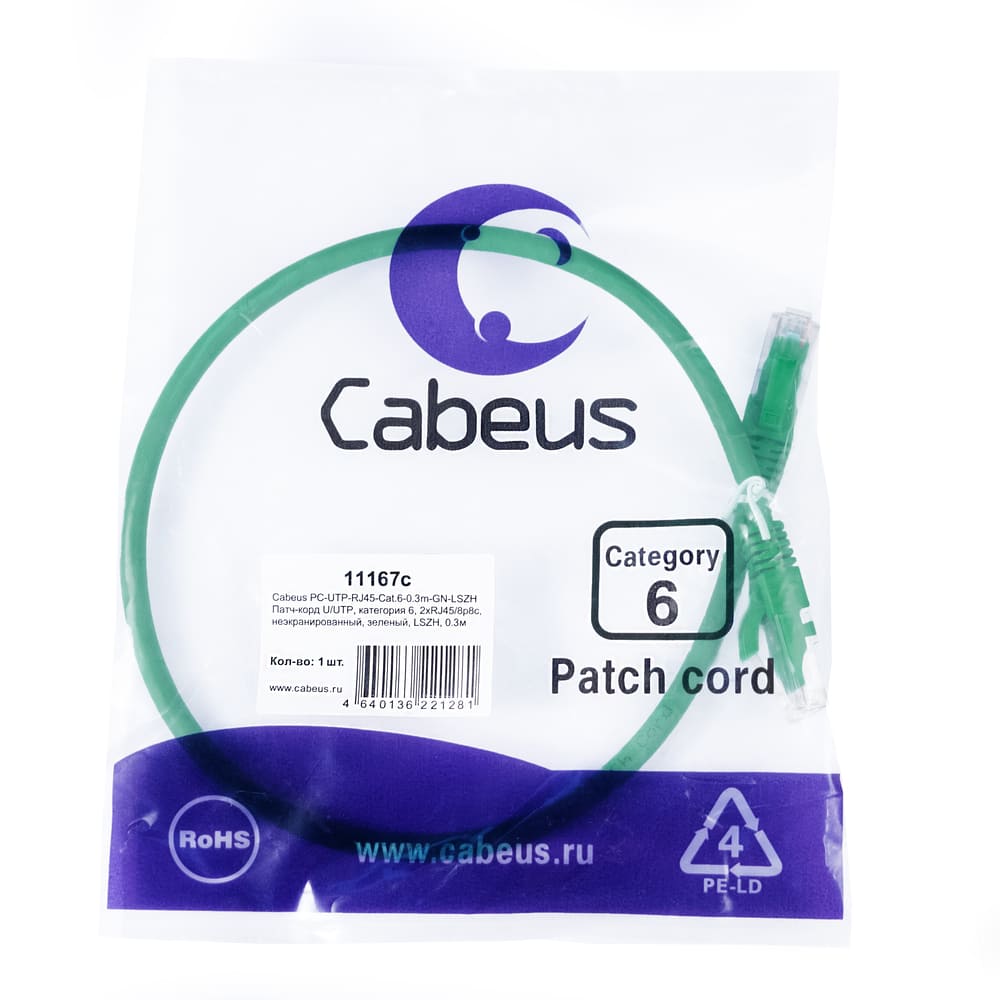 Патч-корд PC-UTP-RJ45-Cat.6-0.3m-GN-LSZH 11167c
