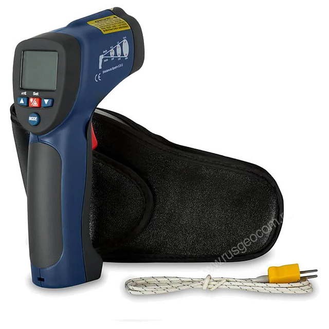 Цифровой пирометр CEM DT-8833 способен производить бесконтактные замеры в диапазоне температур от –50 до +800°C. Наличие канала для измерений с помощью подключаемого датчика-термопары обеспечивает расширение верхнего предела рабочего диапазона до 1370°C, позволяя осуществлять контроль объектов с высокой степенью нагрева. Также с помощью контактного сенсора можно предварительно, перед выполнением ответственных работ в дистанционном режиме, контролировать достоверность результатов измерения ИК-канала.