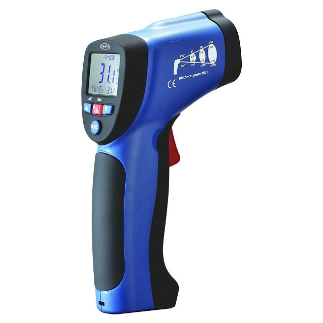 Пирометр DT-8835 позволяет бесконтактно измерить температуру поверхности различных объектов, в том числе сильно нагретых или находящихся в труднодоступном месте. Прибор наводится на исследуемую поверхность с помощью встроенного лазерного указателя. Оптическое разрешение DT-8835 - 30:1 - позволяет минимизировать рабочую площадь устройства, а регулируемый коэффициент излучения (от 0,1 до 1,00) помогает максимально точно произвести измерение температуры поверхности любых материалов.