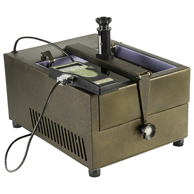 Электронный измеритель теплопроводности ИТП-МГ4 "300" включает в себя выносной блок управления и индикации и стационарный тепловой блок с преобразователем, в рабочую зону которого помещается испытуемый образец. Реализуя асимметричную схему испытаний, установка снабжена нагревателем и холодильником, функции которых выполняют элементы Пельтье, а также тепломером, платиновыми термодатчиками и преобразователем первичных сигналов. Система фиксации образца оборудована отсчетным приспособлением с микрометрическим винтовым элементом, позволяющим регулировать зазор между плитой нагревателя и поверхностью объекта контроля и определять толщину насыпных материалов, а также динамометрическим устройством для обеспечения нормирования усилия прижима. Электронный блок, помимо дисплея и кнопок управления, оснащен интерфейсом для передачи данных на ПК.