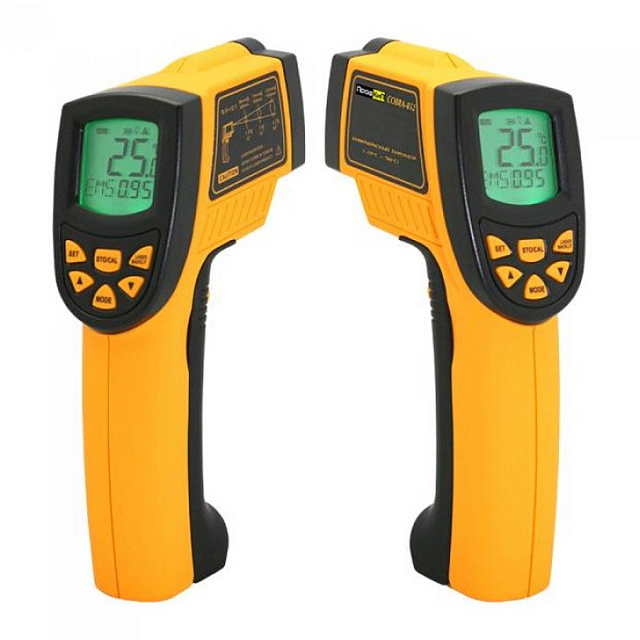 Инфракрасный термометр ПрофКиП Cobra-852 использует в своей работе излучение оптического и инфракрасного спектров. Возможность дистанционного измерения температуры является несомненным преимуществом пирометра перед традиционными контактными термометрами. Высокая точность и малое время отклика наряду с низким энергопотреблением увеличивают популярность термометра ПрофКиП Cobra-852. У инфракрасного термометра обширная среда применения: экологическая и химическая отрасли, неразрушающий контроль, отопление и кондиционирование.
