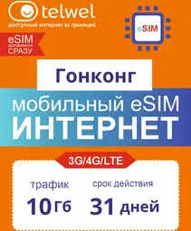 - Описание Электронная eSIM-карта Telwel Гонконг на 10Гб 31 дней с пакетом интернета позволяет выгодно сэкономить на роуминге за границей. Можно пользоваться интернетом, социальными сетями, мессенджерами, Google картами и другими интернет-сервисами.