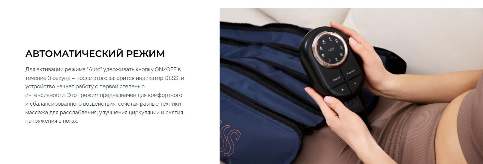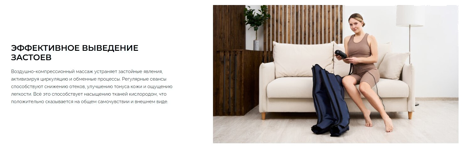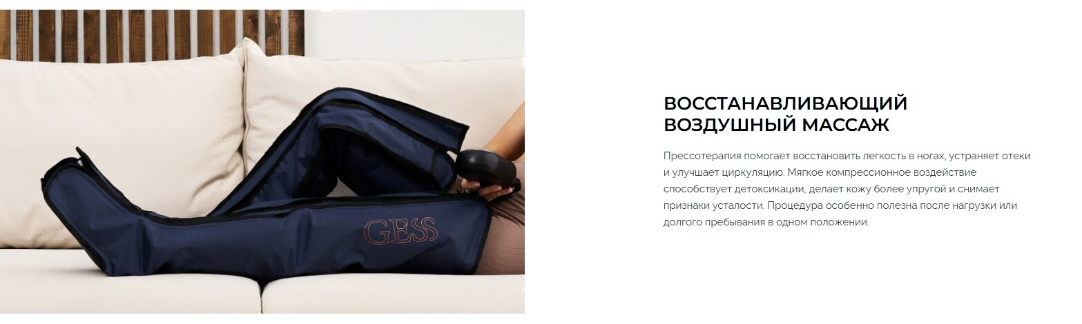 • Функции воздушно-компрессионный массаж, лимфодренажный, прессотерапия, массаж шиацу
