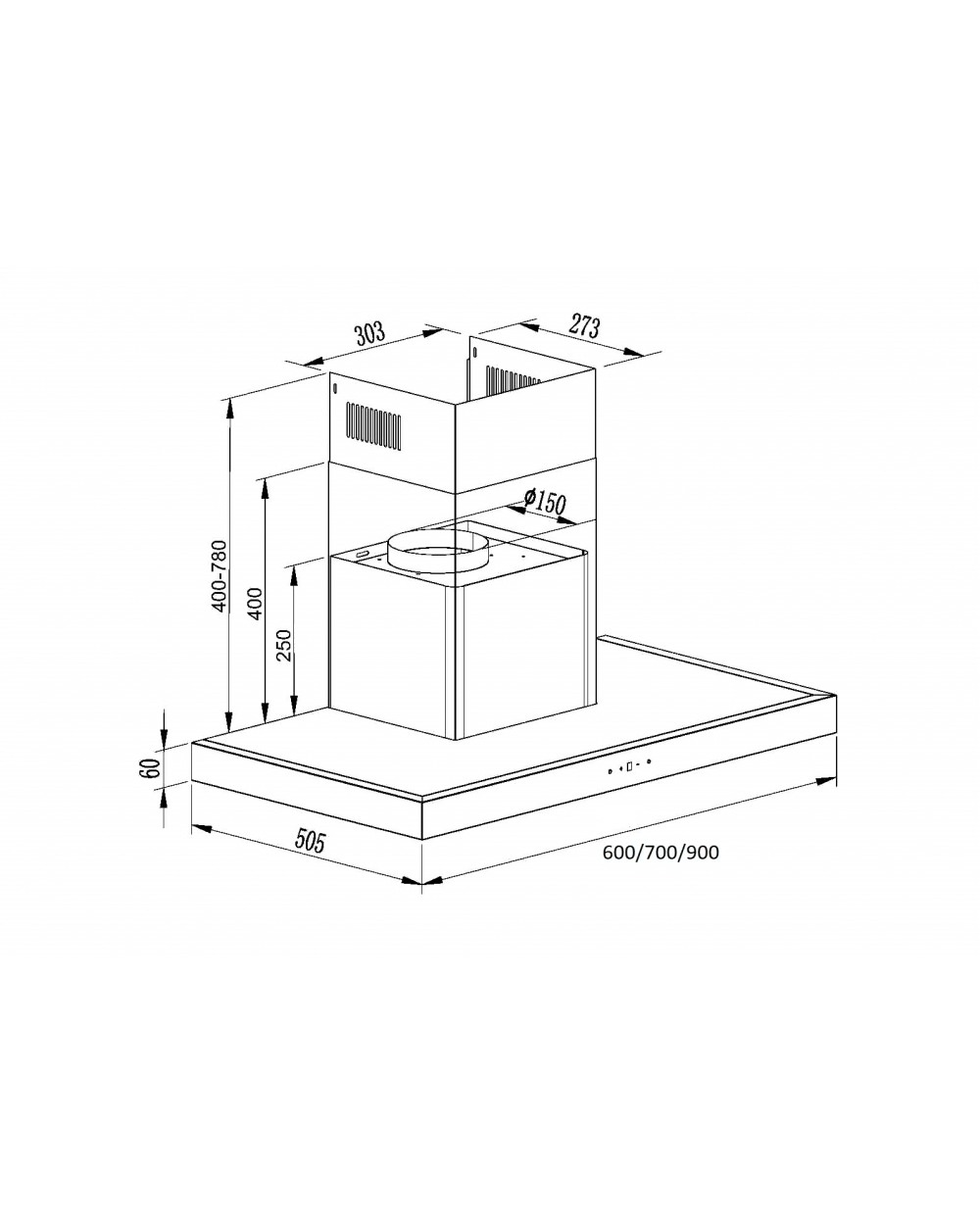 - Высота 84 см (46-84 см — вытяжка, 40-78 см короб)