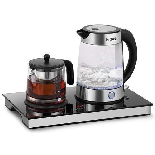 Чайный набор КТ-6744 состоит из чайника ёмкостью 1,7 л, заварочного чайника ёмкостью 1 л с фильтром и базы. Чайный набор позволяет не только вскипятить воду, но и заварить чай или кофе в заварочном чайнике. Внешняя часть корпуса выполнена из пластика и нержавеющей стали, а внутренняя — из стекла. Крышка чайника пластиковая со вставками из нержавеющей стали. Заварочный чайник изготовлен из термостойкого стекла и имеет съёмный фильтр из нержавеющей стали для чая или кофе. В месте установки заварочного чайника на базе находится платформа с подогревом. На базе расположена панель управления с сенсорными кнопками для выбора режима работы и установки температуры платформы с подогревом.