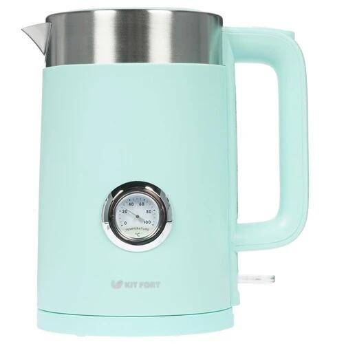 Электрочайник Kitfort КТ-659-2 привлекает к себе внимание приятным светло-зеленым оформлением и наличием встроенного термометра, при помощи которого можно отслеживать температуру воды в реальном времени. В чайнике установлен долговечный нагревательный элемент, а объем составляет 1.7 л. Съемный нейлоновый фильтр в носике предотвращает попадание накипи в чашку.