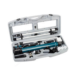 Veber NewStar MT80080 AZII - это рефлекторный телескоп в металлическом корпусе с диаметром объектива 80 мм, фокусным расстоянием 800 мм, окулярами F6, F20 и линзой Барлоу с увеличением 3х. Искатель Red Dot с лазерной подсветкой. Труба телескопа при помощи крепежной площадки присоединяется к азимутальной монтировке, установленной на штатив-треногу.